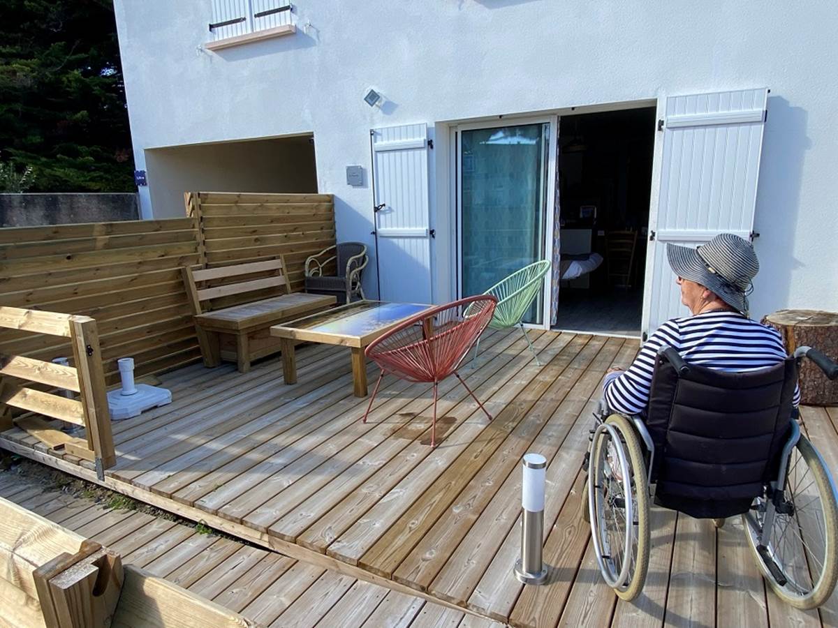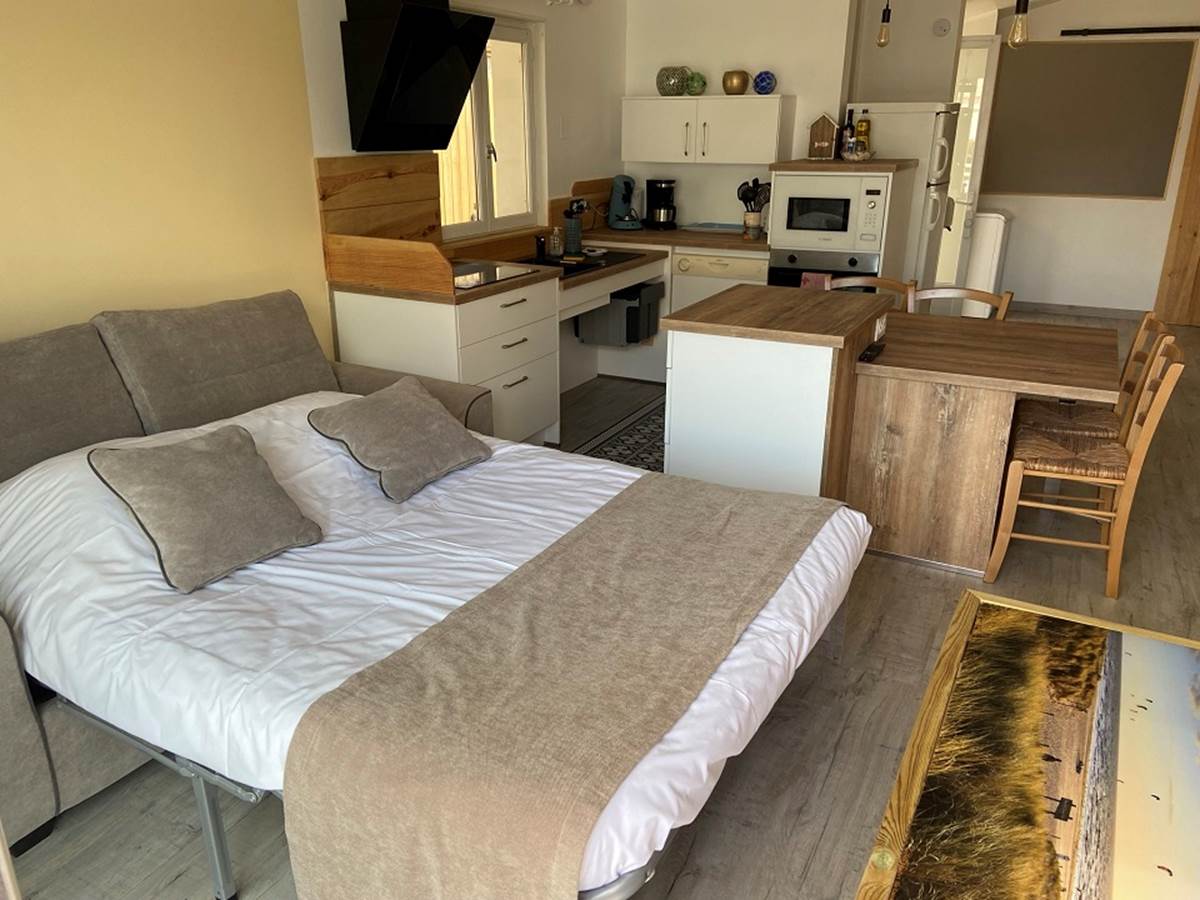 You will have a bedroom with a double bed with bathroom and toilet adapted for people with reduced mobility, a living room with a fitted and equipped kitchen facing south opening onto a private terrace and a sofa bed in the living room. stay.